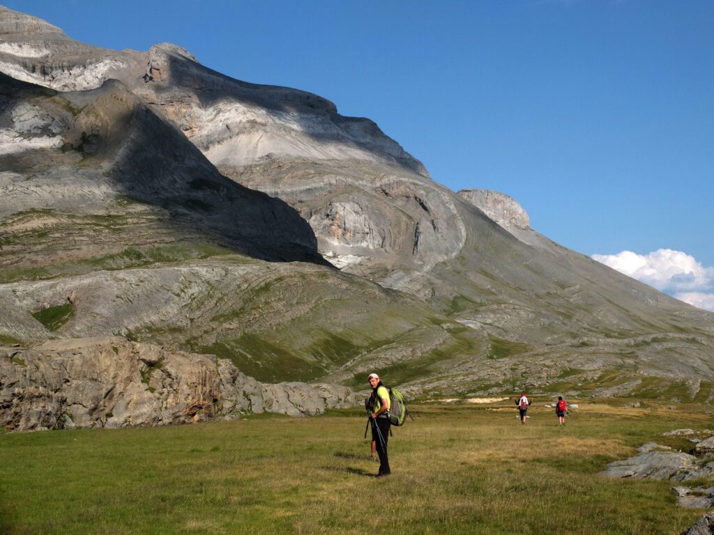 S’élançant d’un seul jet à l’assaut des nuages, les hauts sommets du cirque de Gavarnie ouvrent les portes sur les grands canyons d’Ordesa qui entaillent les immenses plateaux du Mont Perdu. Ce massif calcaire, le plus haut d’Europe, est classé au Patrimoine Mondial de l’Unesco. En 6 jours de marche, avec un portage du sac allégé, la randonnée permet de découvrir les impressionnants cirques glaciaires de Gavarnie, Troumouse et Estaubé ; passage ensuite par la grandiose Brèche de Roland, frontière naturelle avec l’Espagne pour la découverte de la grandiose vire de la Faja Pelay, immense balcon privilégié pour contempler les méandres du spectaculaire canyon d’Ordesa avec, en toile de fond, l’imposant sommet calcaire du Mont Perdu. Hardes d’isards escaladant les parois calcaires, lacs asséchés depuis des milliers d’années et falaises calcaires vertigineuses confèrent à ce séjour une ambiance grandiose, où la haute montagne et ses hauts sommets flirtent au quotidien avec les immenses plateaux verdoyants parsemés de petits ruisseaux où passent les grands troupeaux de brebis. Sans nul doute, une des randonnées les plus spectaculaires des Pyrénées !
