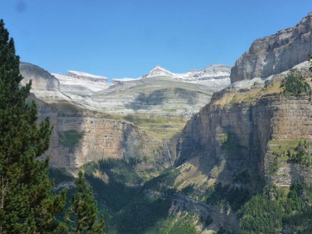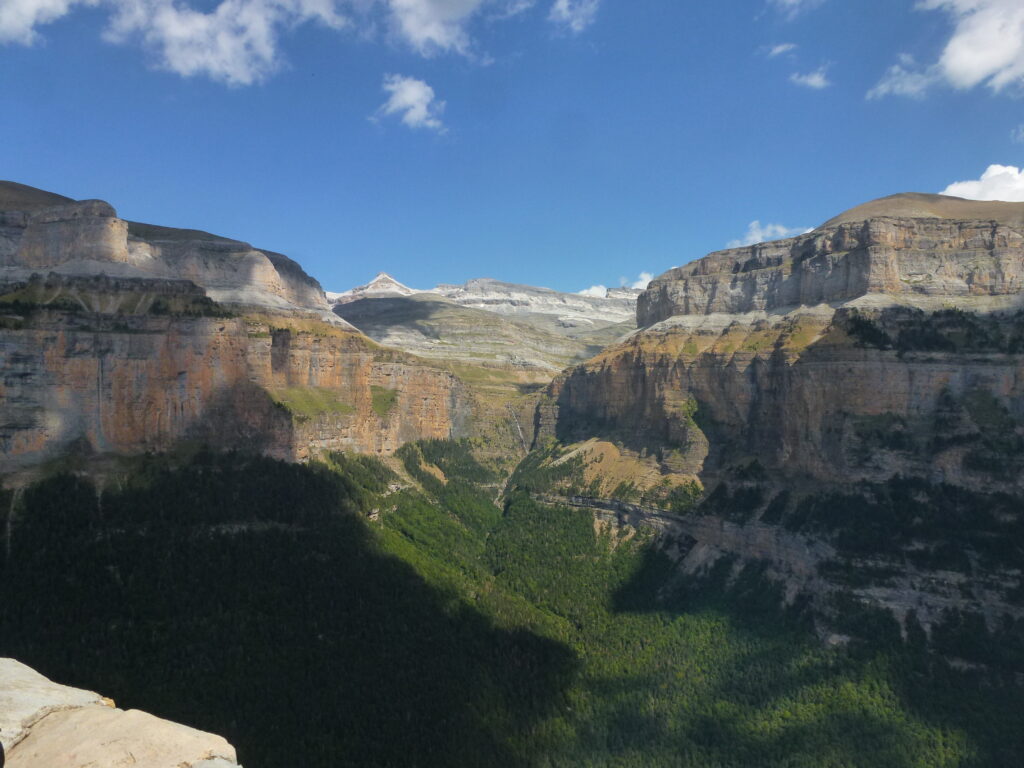 Depuis le point culminant qu’est le Mont Perdu, une série d’impressionnantes vallées glaciaires descendent en éventail. Le canyon d’Ordesa est parmi les plus grands et les plus profonds d’Europe.