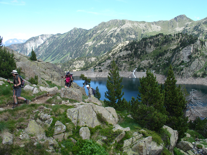 Par les forêts de pins éparses et le long des ruisseaux qui dévalent de lac en lac, arrivée au refuge de Colomers juché sur les rives de l’étang aux eaux turquoise… un véritable paysage de carte postale ! Possibilité en après-midi de découvrir la boucle des lacs, paysages féériques où toute une kyrielle d’étangs aux couleurs émeraude et turquoise s’égrainent le long du sentier.