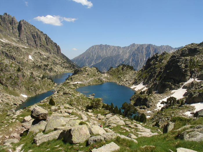 Accueil en gare SNCF de Saint-Gaudens puis direction l’Espagne dans le Val d’Aran. Randonnée dans la région d’Orry pour la découverte des étangs bleus de Bassiver, nichés dans le cirque de Marimania… Paysages magnifiques où les vallons glaciaires parsemés de lacs et entourés de hauts sommets, ouvrent des panoramas splendides sur le massif de l’Aneto et ses glaciers étincelants.