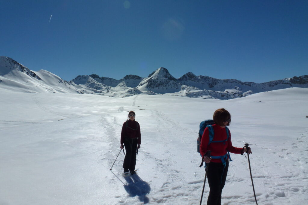 Des randonnées raquettes, faciles, dans l’une des plus belles régions des Pyrénées que sont les Encantats et le val d’Aran ; des paysages magiques où les arêtes des hauts sommets chargées de neige entourent les nombreux lacs cachés sous des mètres de neige. De grandes forêts de pins, parsemées de nombreuses clairières, seront des belvédères uniques pour contempler les panoramas grandioses des Encantats et du massif de l’Aneto/Maladetta.