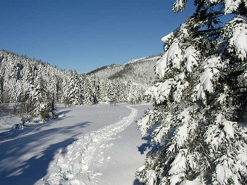 Suivez les traces de votre guide : sur la neige, il n’y a point de sentier ; sous le manteau neigeux de nombreuses espèces végétales passent l’hiver « au chaud ». Ne faire qu’une trace limite le risque de découvrir certaines plantes qui, une fois à  l’air libre, sont dépourvues de leur protection…le froid vif, les intempéries peuvent leur être fatales.